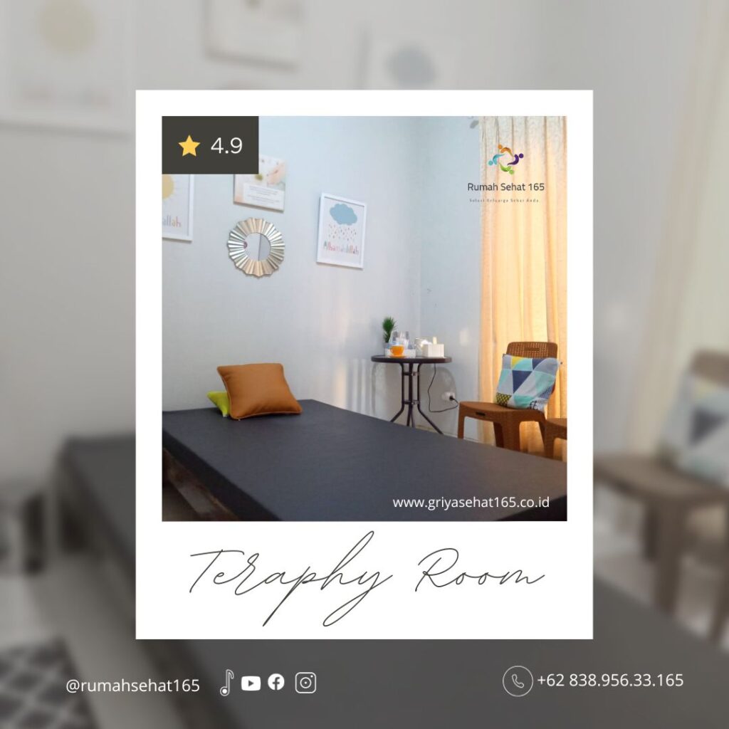 Layanan terapi di Griya Sehat 165 terdiri atas bangunan 2 (dua) lantai  & 4 (empat) ruangan terapi dengan konsep Green House